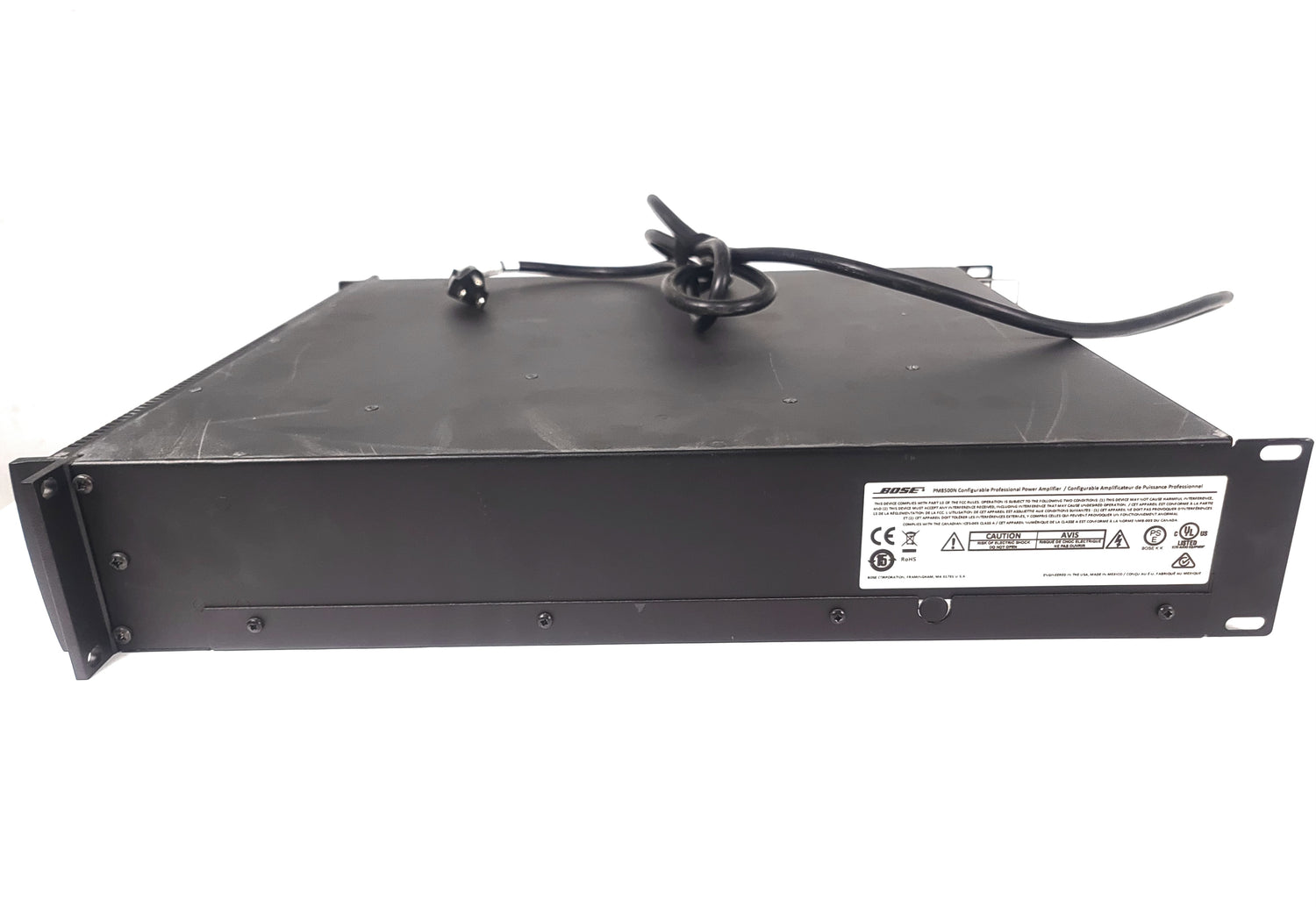 The Bose Professional PowerMatch PM8500N configurable professional power amplifier provides concert-quality sound with a high level of scalability and configurability for fixed installation sound reinforcement systems. Ethernet-based networking enables configuration, control and monitoring, and an expansion slot supports input from optional digital audio accessory cards. The front-panel USB connection allows for direct configuration PC connection to a single amplifier. PowerMatch amplifiers utilize numerous Bose Professional technologies to deliver an unprecedented combination of performance, efficiency and ease of installation—all in a reliable, proprietary design.