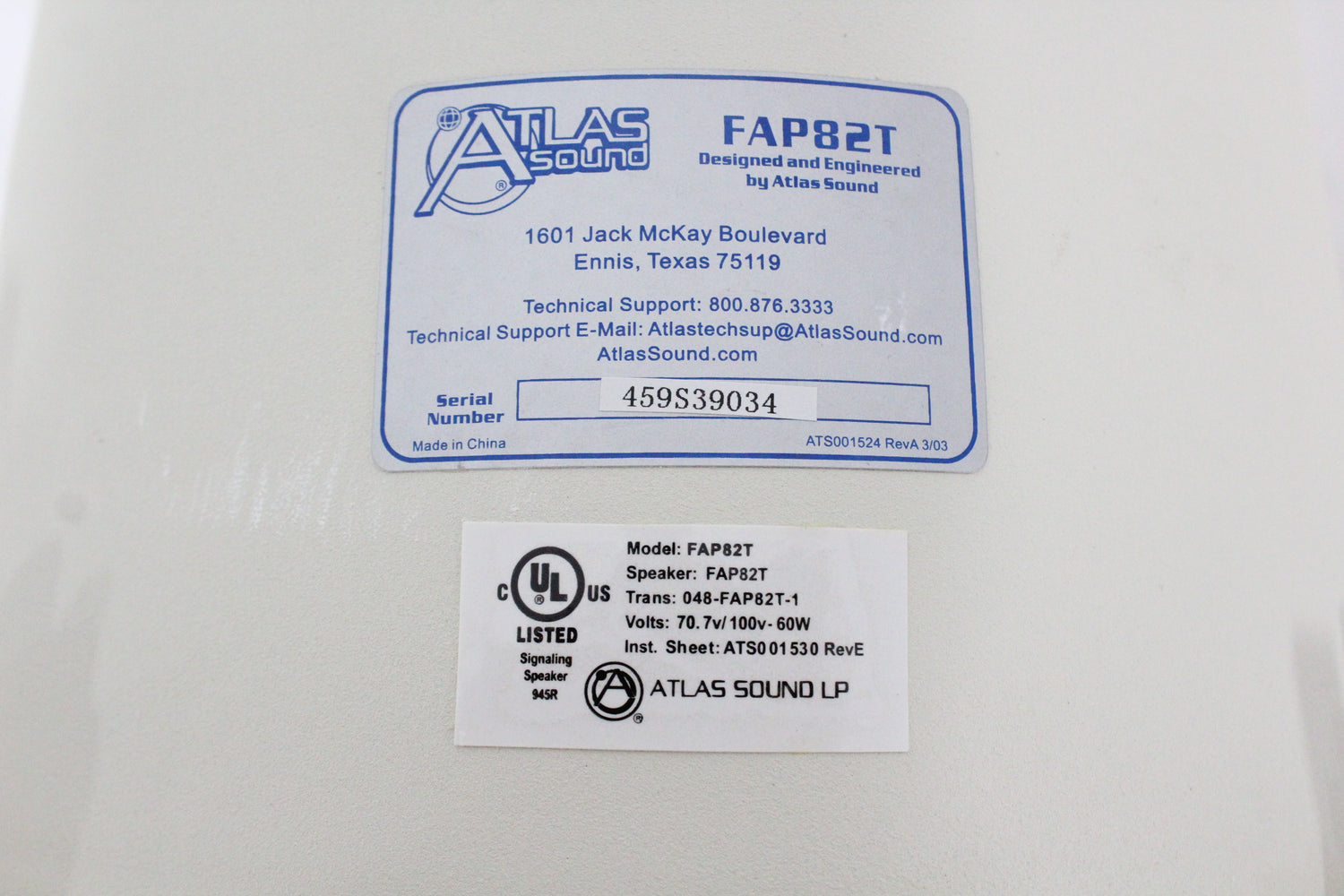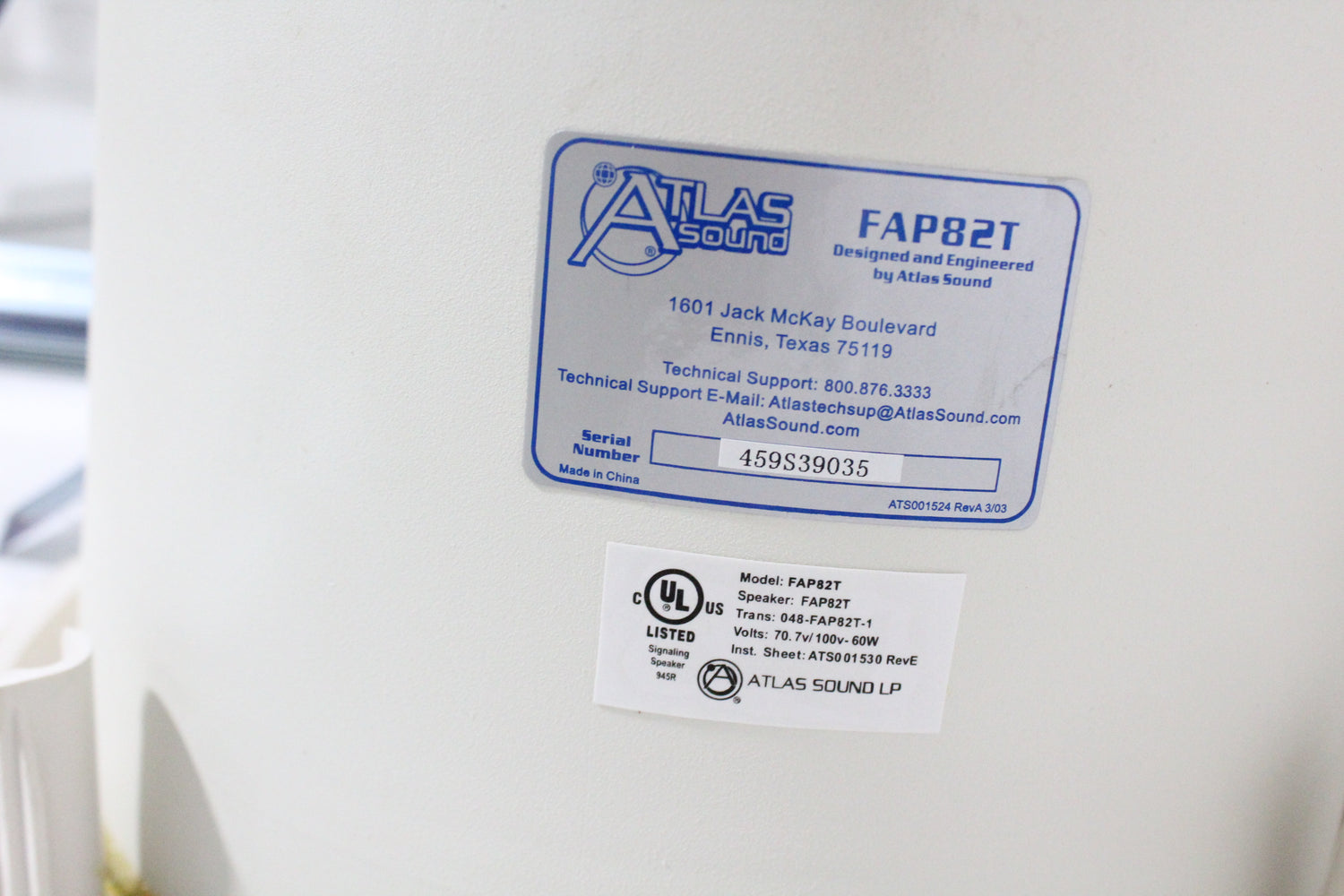 The AtlasIED FAP82T is a premium performance 70.7/100V tuned & ported 8" coaxial ceiling speaker system perfectly suited for many business music and public address applications -especially applications where high ceilings require speakers with increased efficiency and tighterpattern control. High quality construction 38mm voice coil, 8" coaxial cone type driver includes polypropylene cone with a butyl rubber surround. The 19mm coaxially mounted tweeter is constructed of PEI. sensitivity of 90dB average means less power may be required to achieve the desired SPL. This speaker is factory assembled to an optimally tuned & ported deep drawn enclosure and includes a specially designed 60 watt low saturation 70.7V/100V transformer. A convenient front mounted selector switch allows tap selection without the need to remove the speaker from the ceiling. This tap selector switch also includes a transformer bypass setting for instances where the 8 ohm FAP82T driver is to be direct coupled with a low impedance amplifier.