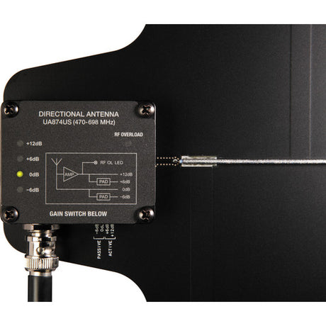 Experience improved wireless reception with the UA874. This UHF antenna uses a log periodic dipole array to produce a cardioid pattern toward the desired coverage area, achieving greater rejection of RF signals outside the area than standard 1/2 wave omnidirectional antennas.