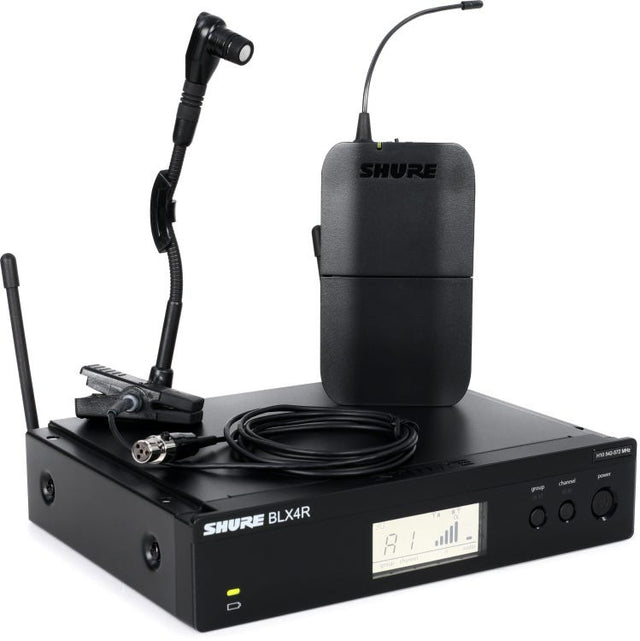 "The Shure BLX14R/B98 brings brass, woodwind, and percussion players a cost-effective wireless instrument microphone system with quality sound, simple setup, intuitive operation, and dependable performance right out of the box. It includes the rugged BLX4R single-channel receiver with LCD display, adjustable output level, and removable antennas for rackmounting the unit—ideal for sound-reinforcement applications in small venues, wedding halls, and houses of worship.