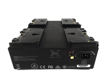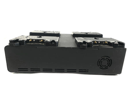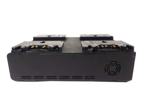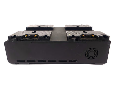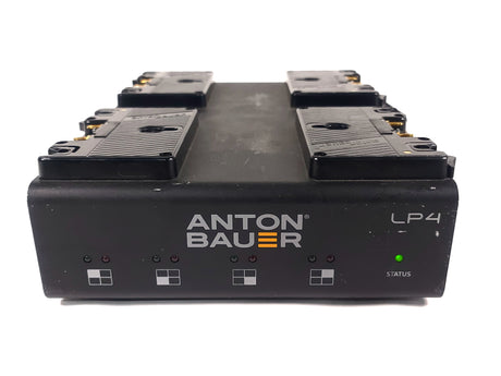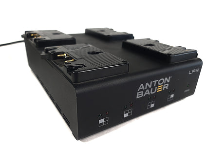 Simultaneously charge four high-capacity batteries quickly with this Gold mount LP4 Quad Battery Charger from Anton Bauer. This four-bay, software-controlled simultaneous Gold mount battery charger is aimed at rental facilities, ENG/EFP/OB vehicles, broadcast equipment depots, or situations that require many batteries to be on charge and ready to go. In simultaneous charging situations, the internal software prioritizes charging to the strongest battery so it is available in the shortest time possible.