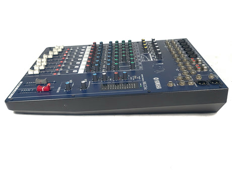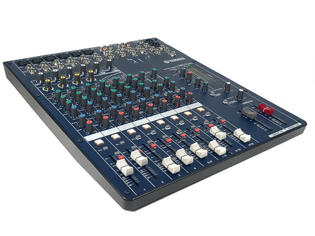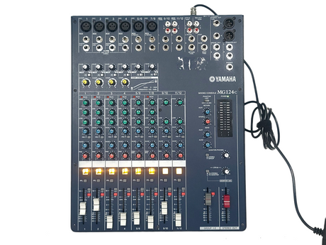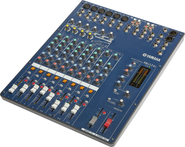 The Yamaha MG124C is a compact, 12-input, 4-bus analog mixing console known for its quality sound, portability, and features like single-knob channel compressors, 3-band EQs with high-pass filters, and illuminated channel On/Off switches, making it versatile for live sound or studio use, with its sibling, the MG124CX, adding built-in digital effects (SPX).