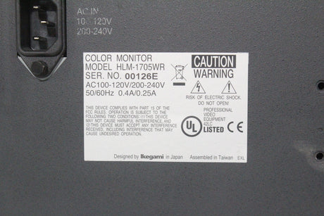 Ikegami HLM-1705WR HD FULL HD Multi Format LCD Color Monitor w/ Rack Connectors