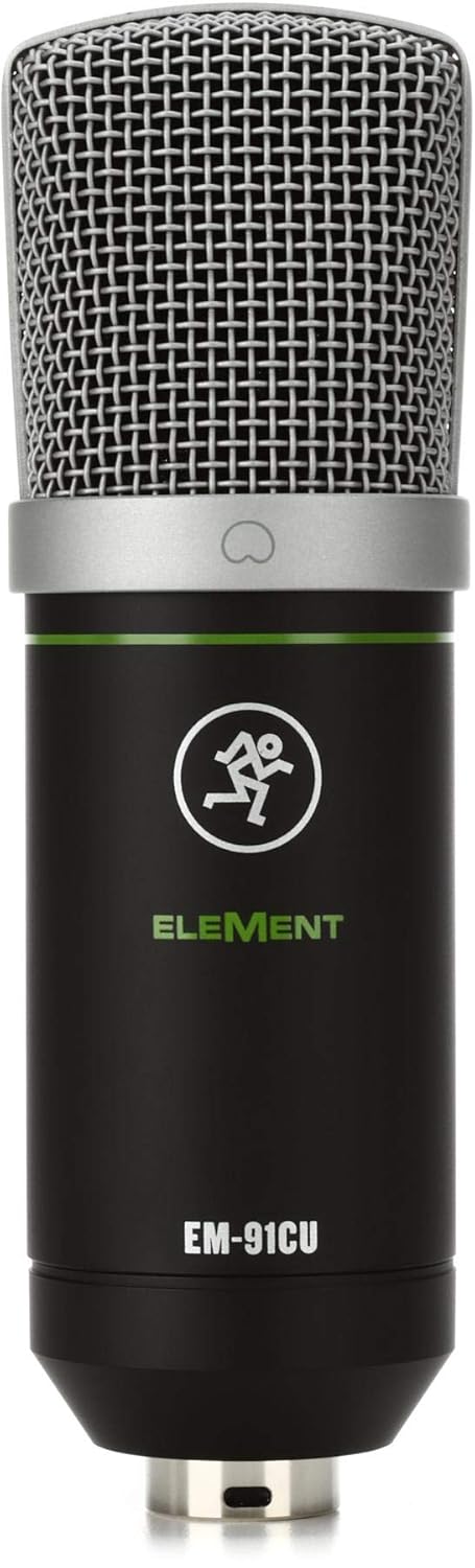 The Mackie MCK-2053036-00, part of the EleMent Series, is an EM-91CU USB Condenser Microphone designed to provide studio-quality audio in a simple, plug-and-play format. Perfect for content creators, podcasters, streamers, and musicians, this microphone delivers clear, detailed, and reliable sound with minimal fuss. It features Mackie's acclaimed Onyx preamp circuitry for pristine tone, high dynamic range, and low noise performance. The "Built-Like-a-Tank" construction ensures durability for consistent use in home studios, offices, or on the go. A predictable cardioid polar pattern effectively rejects off-axis sounds, focusing on the audio source directly in front of the mic. The microphone comes complete with a shock mount to reduce handling noise and a USB cable for immediate connectivity, making it an excellent, affordable choice for anyone looking to step up their recording quality.