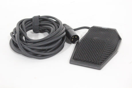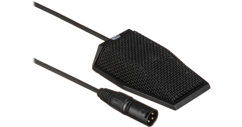 The MXL FR-401M Supercardioid Low Profile Boundary Microphone is a discreet audio capture solution designed for use on flat surfaces such as conference tables, podiums, or stage floors. This low-profile microphone utilizes a supercardioid polar pattern to provide a highly directional pickup area, which helps to isolate the desired sound source (like a speaker) while minimizing the capture of ambient room noise and feedback. Its robust all-metal construction makes it suitable for demanding professional environments, and its phantom power operation ensures compatibility with professional audio systems.