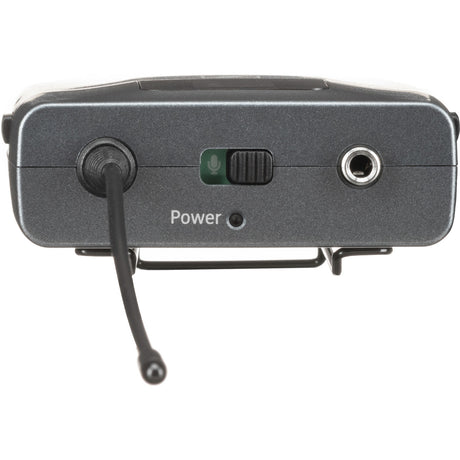 The receiver utilizes true diversity technology with dual internal antennas to continuously select the strongest RF signal, effectively mitigating dropouts caused by multipath interference and ensuring a stable audio link in challenging wireless environments. It offers both balanced XLR and unbalanced ¼-inch outputs for flexible integration into mixing consoles, powered speakers, or recording devices. The receiver's interface includes clear LED indicators for power, audio level, and RF signal strength, along with three user-selectable frequency presets for quick coordination in multi-system setups. The accompanying bodypack transmitter is lightweight and compact, designed for secure attachment to a belt or waistband, and features a simple two-button control for power and mute functions, powered by two AA batteries for extended operation.