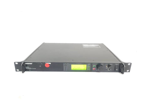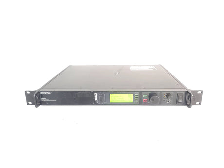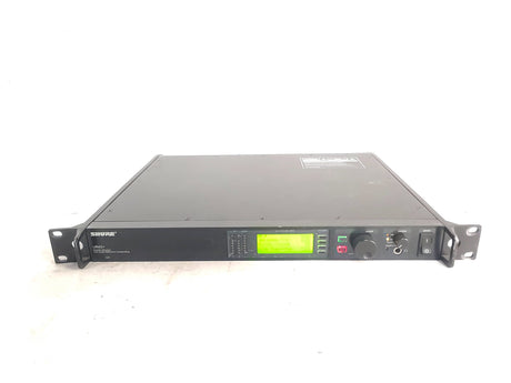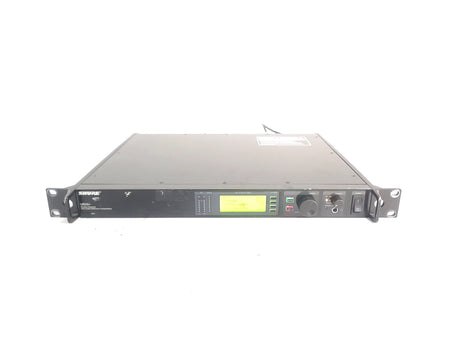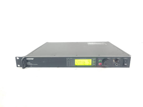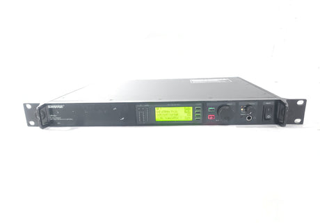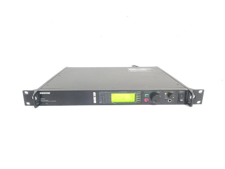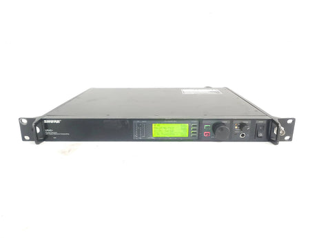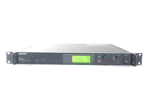 The UR4S+ diversity receiver is a durable, single space, rack-mountable unit designed for use with the Shure UHF-R series. The UR4S+ features a diversity design that aides in minimizing Radio Frequency (RF) interference and noise. A Back-lit LCD provides access to all programmable parameters. Audio outputs include a microphone / line level switchable balanced XLR with ground lift and 1/4" phone connectors. USB and Ethernet connections are provided for direct integration with a PC and network arrays.