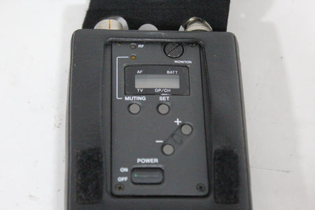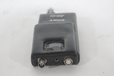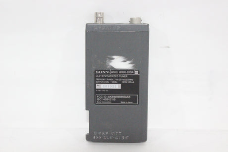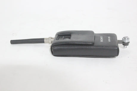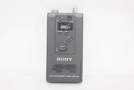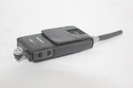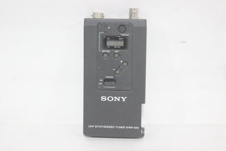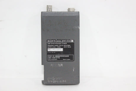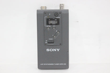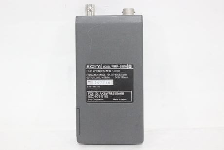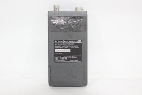 The Sony WRR-810A UHF Synthesized Tuner is a compact, reliable portable receiver in the 800 MHz frequency band, ideal for professional electronic news gathering (ENG) and electronic field production (EFP) applications. The tuner is engineered for ease of use in multi-channel environments, utilizing a Phase Locked Loop (PLL) synthesized circuit and preset channel groups to avoid intermodulation interference when several units operate simultaneously. Its lightweight design and battery operation make it highly mobile, and it can be easily mounted on a camcorder with the correct accessories.