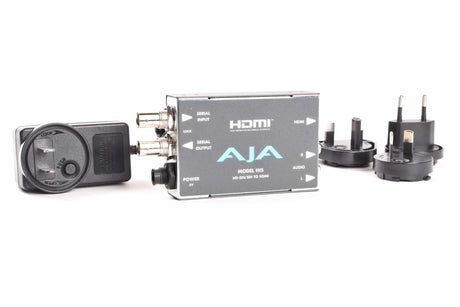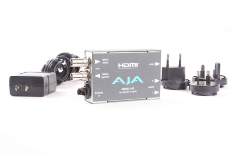 The AJA Hi5 is a compact, professional-grade bidirectional converter that seamlessly translates between HD-SDI/SDI and HDMI video signals, while also handling embedded and analog audio. This portable device is a vital tool for video professionals working in field production, broadcast, post-production, and live events, where interfacing equipment with different video standards is a daily challenge. It allows users to connect a camera or recorder with an SDI output to an HDMI monitor, or conversely, feed an HDMI source like a laptop or graphics machine into an SDI-based production switcher or router. The Hi5 is renowned for its rugged all-metal construction, plug-and-play simplicity, and reliable performance in demanding environments.