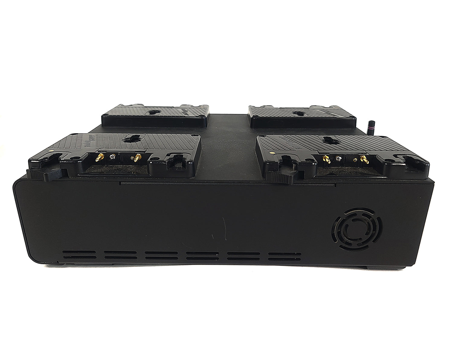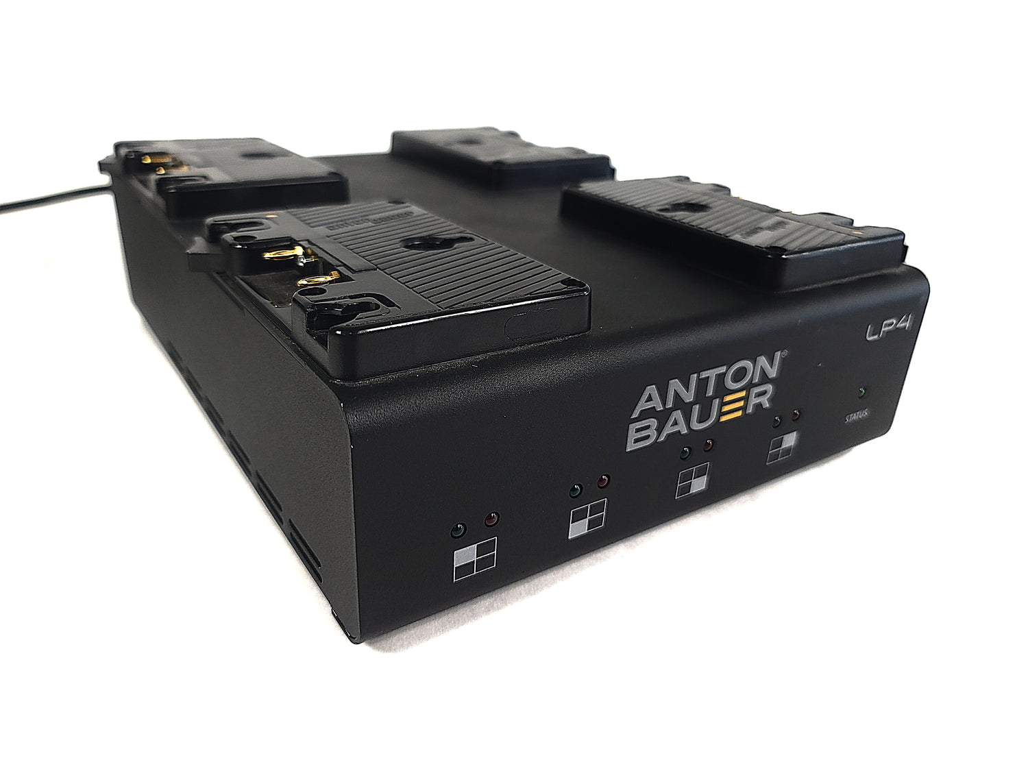 Simultaneously charge four high-capacity batteries quickly with this Gold mount LP4 Quad Battery Charger from Anton Bauer. This four-bay, software-controlled simultaneous Gold mount battery charger is aimed at rental facilities, ENG/EFP/OB vehicles, broadcast equipment depots, or situations that require many batteries to be on charge and ready to go. In simultaneous charging situations, the internal software prioritizes charging to the strongest battery so it is available in the shortest time possible.