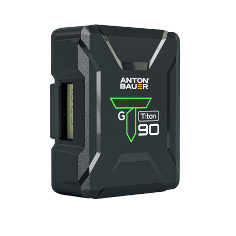 The Anton Bauer Titon90 is a rugged 92Wh Gold Mount lithium-ion battery with built-in LCD runtime display. It delivers 14.4V power, supports a continuous 10A draw with 12–12.5A peaks, and includes D-Tap and USB accessory outputs. Lightweight and capable, it's designed for professional camera rigs, lighting, and mobile broadcast environments.