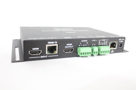 Provides a simple and cost-effective high-definition AV presentation solution for classrooms and meeting spaces. It is composed of a DM Lite surface mount transmitter (HD-TX-301-C-E) and receiver (HD-RX-201-C-E), which connect together over a single CATx cable at up to 230 ft (70 m). Provides auto-switching HDMI® and VGA inputs at the transmitter, and one additional HDMI input at the receiver. Built-in scaling ensures a reliable, high-quality video image. Fully-automatic operation and web browser setup eliminate the need for a control panel, control system, or programming.