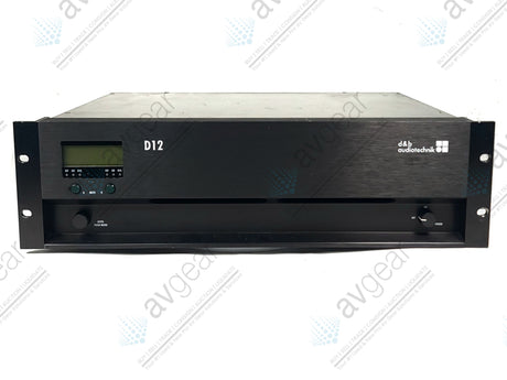 The d&b Audiotechnik D12 is a 3 RU, two-channel power amplifier that provides medium to high power into low impedance loads, typically between 4 and 16 ohms. It is engineered for optimal use with all current d&b loudspeakers and features integrated Digital Signal Processing (DSP) circuits that provide specific configurations and controller functions for each speaker type, alongside a linear mode.
