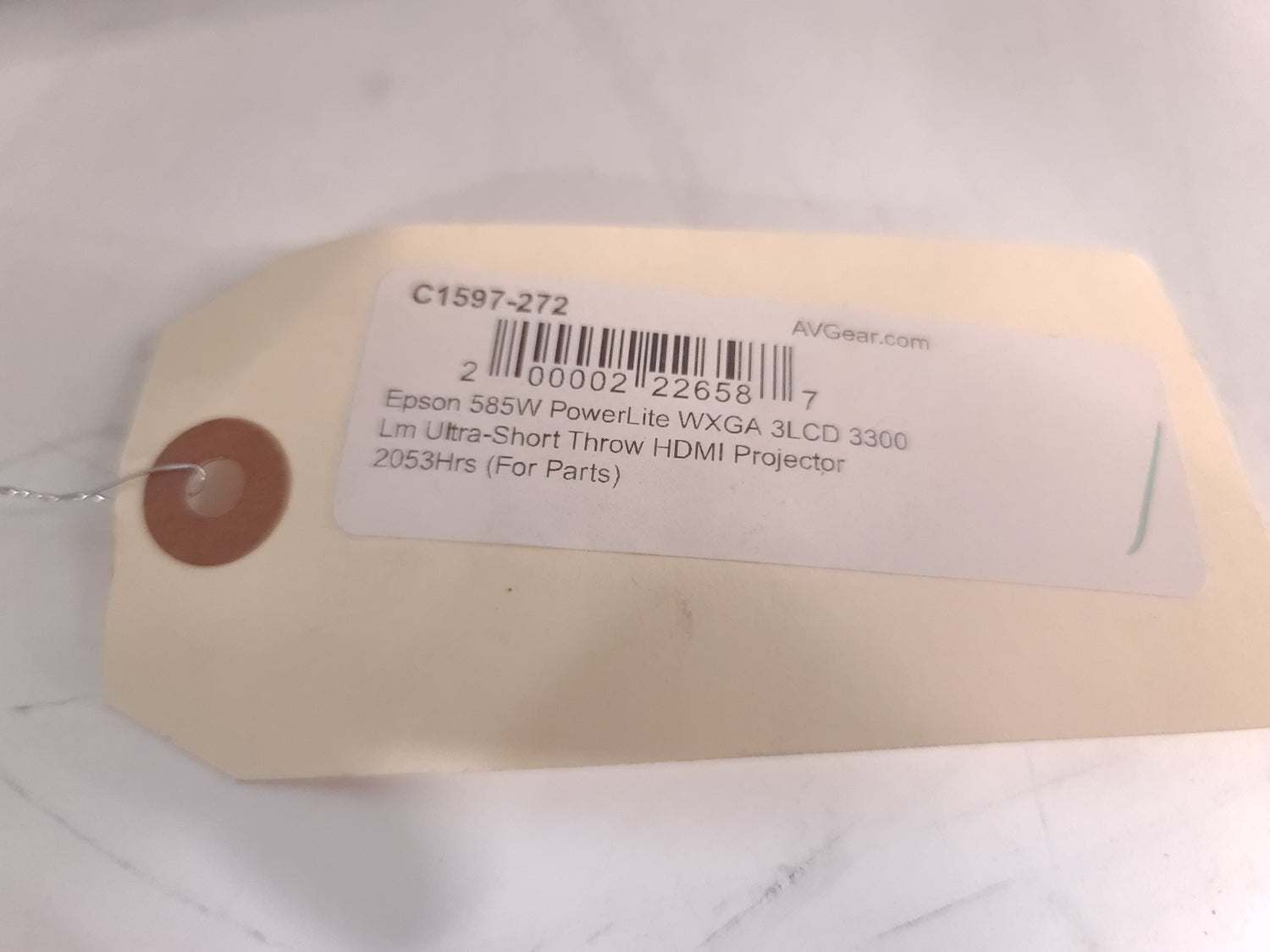 Epson 585W PowerLite WXGA 3LCD 3300 Lm Ultra-Short Throw HDMI Projector (2053 Operating Hours) (FOR PARTS)