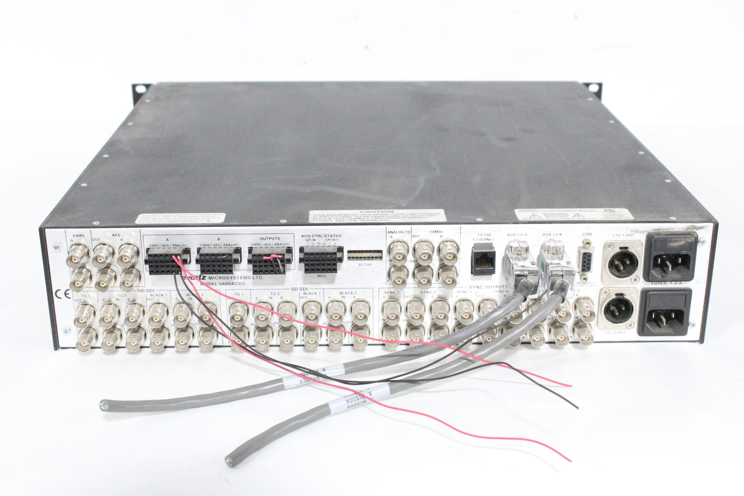 The 5600ACO/ACO2 Automatic Changeovers are intended for use with two 5600MSC Master Clock/Sync Generators. The 5600ACO/ACO2 system uses latching relays to ensure maximum reliability and minimal disruption in the event of any failure. The complete system provides the highest level of security for television station video and time synchronization systems. The 5600ACO is a 1RU device which is an ACO for a subset of the 5600MSC outputs. The 5600ACO2 is a 2RU ACO for all outputs of the 5600MSC. Two power supplies are included as a standard feature, to alleviate any single point of failure concerns. The front panel has three switches, recessed into the panel for added security.