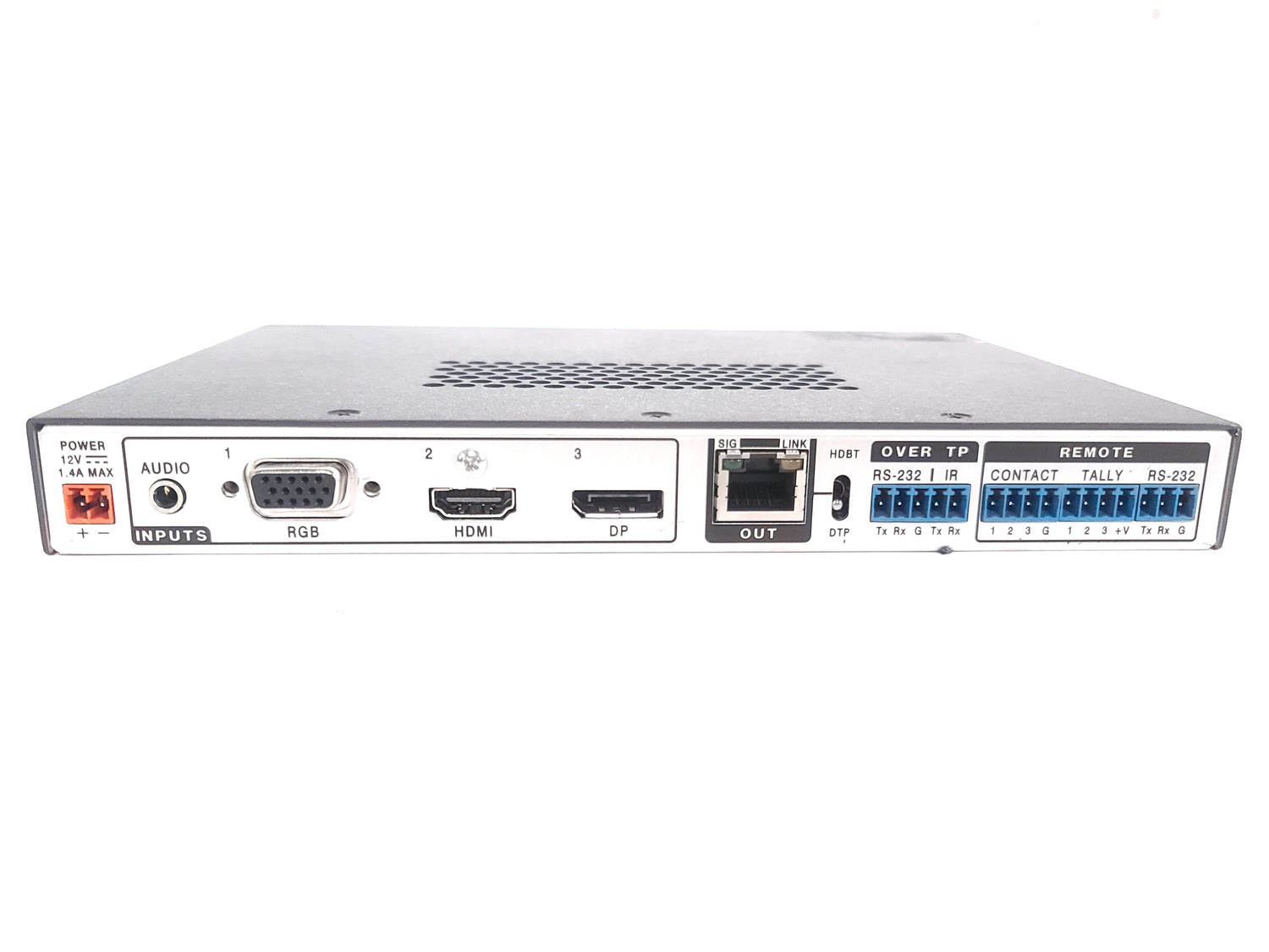 • Transmits DisplayPort, HDMI, or VGA plus control and analog audio up to 230 feet (70 meters) over a shielded CATx cableAuto-switching between inputsSupports computer and video resolutions up to 4KAnalog stereo audio embeddingRemote powering of DTP receiver