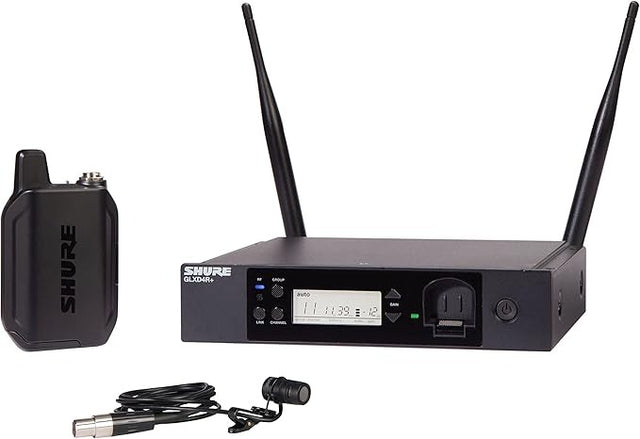 The Shure GLX-D14R+85 Dual Band Wireless Rack System features the premium wearable WL185 lavalier microphone for spoken word applications and the GLXD4R+ half-rack receiver.