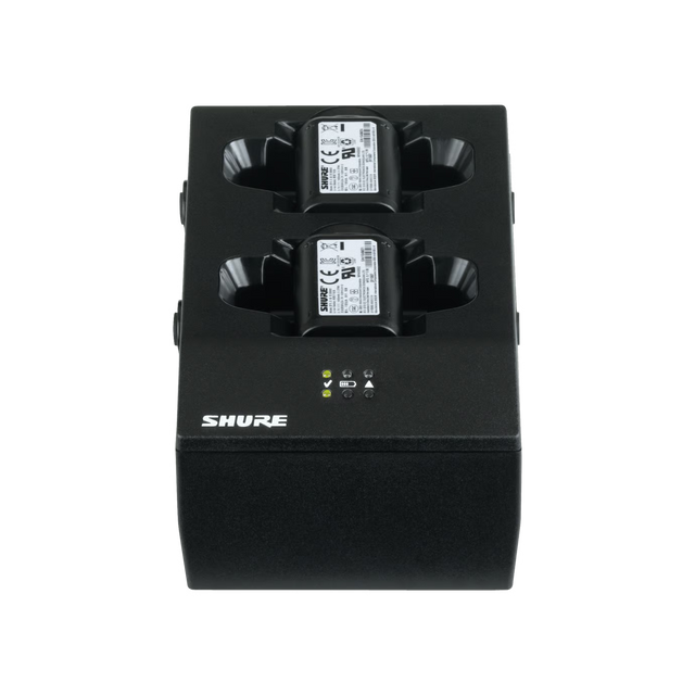 The Shure SBC200 is a compact, dual-docking battery charger designed for charging two Shure SB900 series lithium-ion rechargeable batteries simultaneously. This charger is an essential accessory for users of Shure wireless systems who utilize rechargeable batteries, providing a dedicated, organized solution for maintaining battery readiness. The unit features individual charging bays with LED status indicators for each slot, clearly showing charging, complete, or fault conditions. Its intelligent charging circuitry employs an optimized algorithm to charge batteries safely and efficiently, helping to maximize battery lifespan and performance over many charge cycles.
