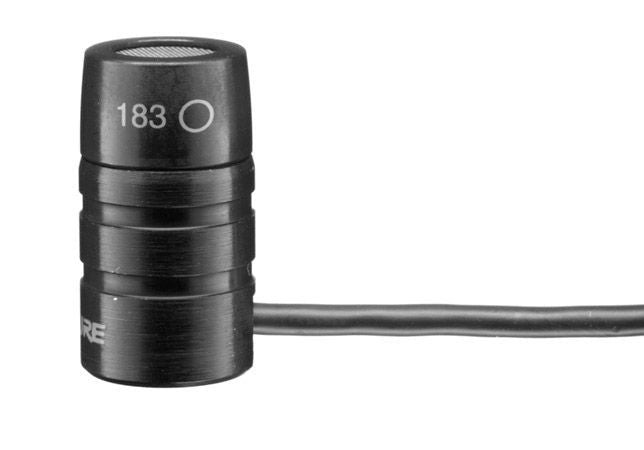 Shure's WL183 is a lavalier electret condenser microphone designed for use with the company's wireless bodypack transmitters. Each microphone has a 1.2-meter (4-foot) cable terminated with a miniature 4-pin mini connector. The mic's furnished tie clip can be rotated in 90° intervals for placement flexibility.