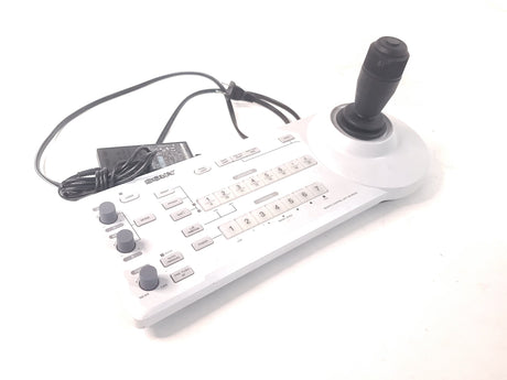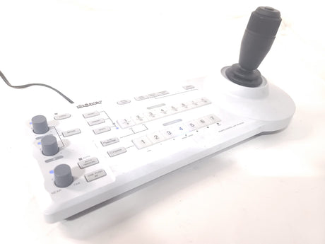 The Sony RM-BR300 is a professional remote control unit specifically designed for use with Sony's BRC series and certain EVI series robotic cameras, offering comprehensive control over camera functions. It features an ergonomic design with a precise joystick for smooth pan, tilt, and zoom operations, making it ideal for broadcast, video conferencing, and remote shooting applications. The unit communicates via the reliable VISCA protocol (RS-232C/RS-422) and allows operators to adjust critical camera settings like white balance, iris, and gain remotely.